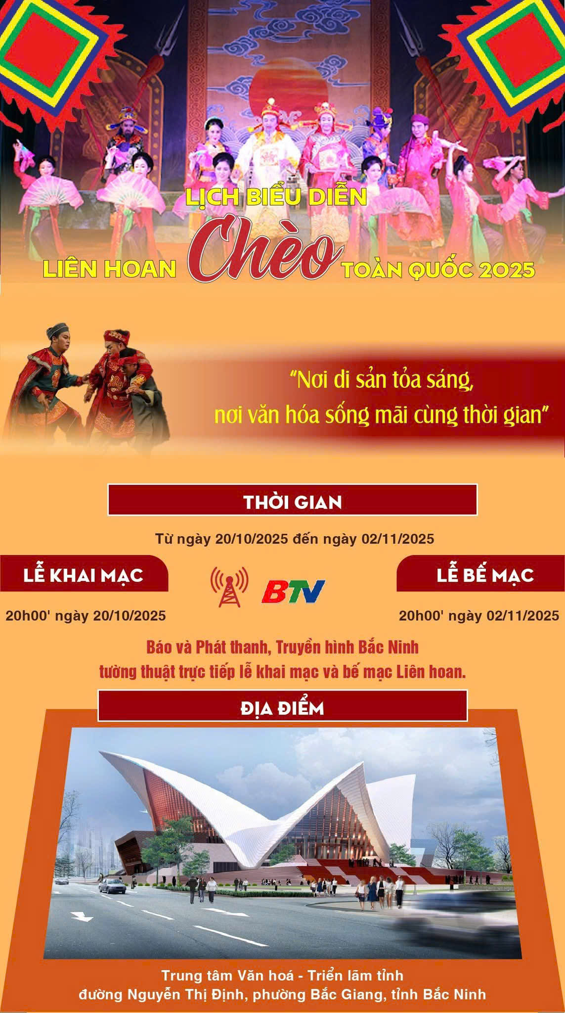 Trung tâm Văn hóa- Triển lãm tỉnh Bắc Ninh, đường Nguyễn Thị Định, phường Bắc Giang, nơi diễn ra Liên hoan Chèo toàn quốc năm 2025.