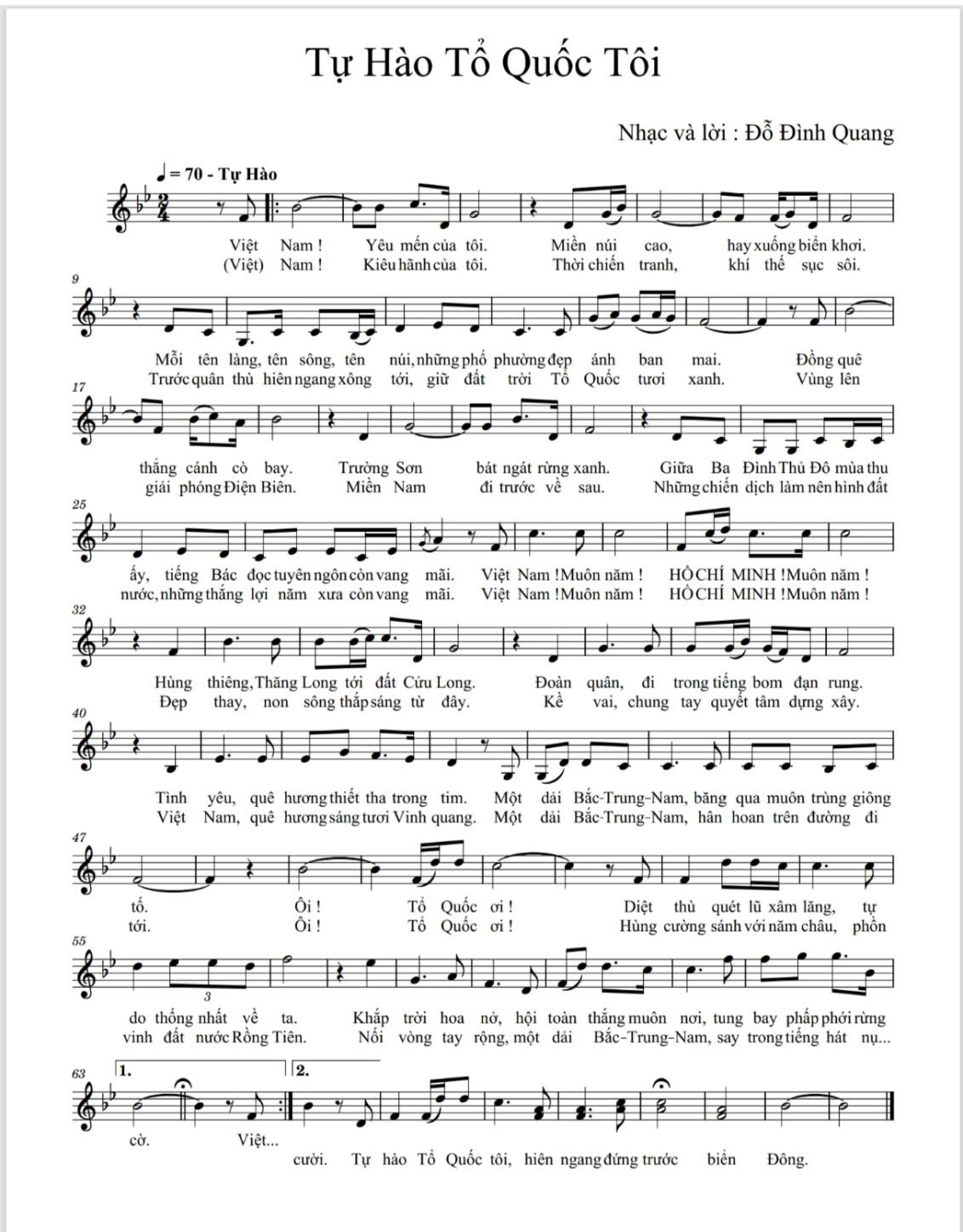 Chuyên ngành Âm nhạc, nhạc sĩ Đỗ Đình Quang đã xuất sắc đạt Giải A với tác phẩm ca khúc "Tự hào Tổ quốc tôi”. Tác phẩm mang âm hưởng hào sảng, ca ngợi tình yêu quê hương, đất nước, được hội đồng nghệ thuật đánh giá cao. Nhạc sĩ Nguyễn Quang Thanh được trao Giải Khuyến khích với ca khúc "Thuở đò qua sông” (phổ thơ của Đặng Thị Quý), một tác phẩm giàu chất trữ tình, gợi nhớ ký ức quê hương và tình người.