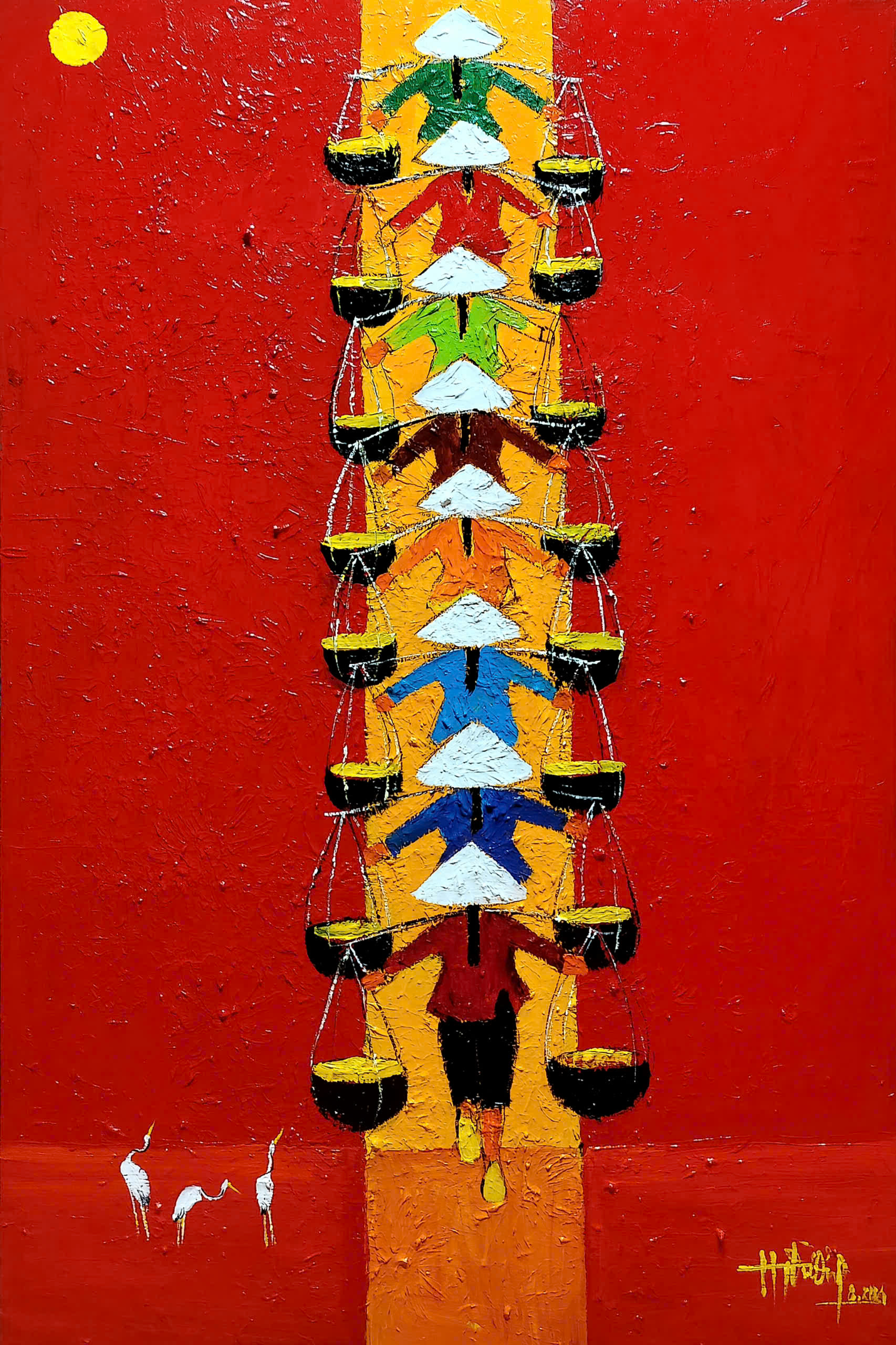 Họa sĩ Hướng Tâm Đường từng tâm sự: "Tôi sinh ra và lớn lên ở làng quê, nên hình ảnh cánh cò, đồng lúa, bờ tre, ao sen đã khắc sâu vào tiềm thức. Với tôi, cánh cò là biểu tượng của sự cần cù, bền bỉ – như chính cuộc sống mà tôi đã trải qua.”