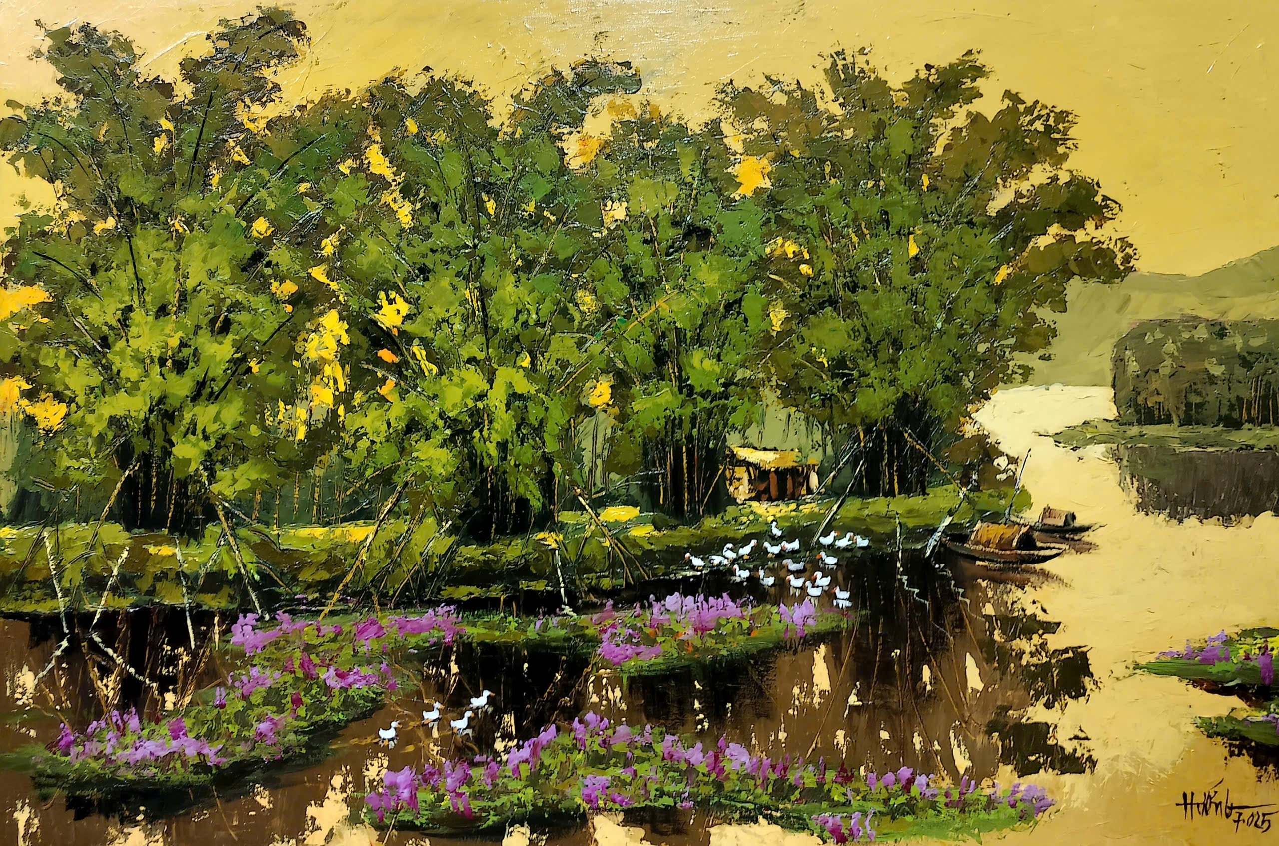 Giữa những ngày thu sang, trong nhịp phố xá vội vã, Triển lãm mỹ thuật cá nhân "Nét Quê” với 36 tác phẩm của họa sĩ Hướng Tâm Đường (tên thật Nguyễn Chí Hướng) khai mạc ngày 25/10/2025, mở cửa đến ngày 30/10/2025 tại Nhà Triển lãm Mỹ thuật Việt Nam số 16, Ngô Quyền, Hà Nội, mang đến cho người xem những khoảnh khắc lắng đọng, gợi nhớ về vẻ đẹp bình dị, thân thuộc của làng quê Bắc Bộ - nơi lưu giữ hồn Việt qua từng nhịp sống, từng gam màu.