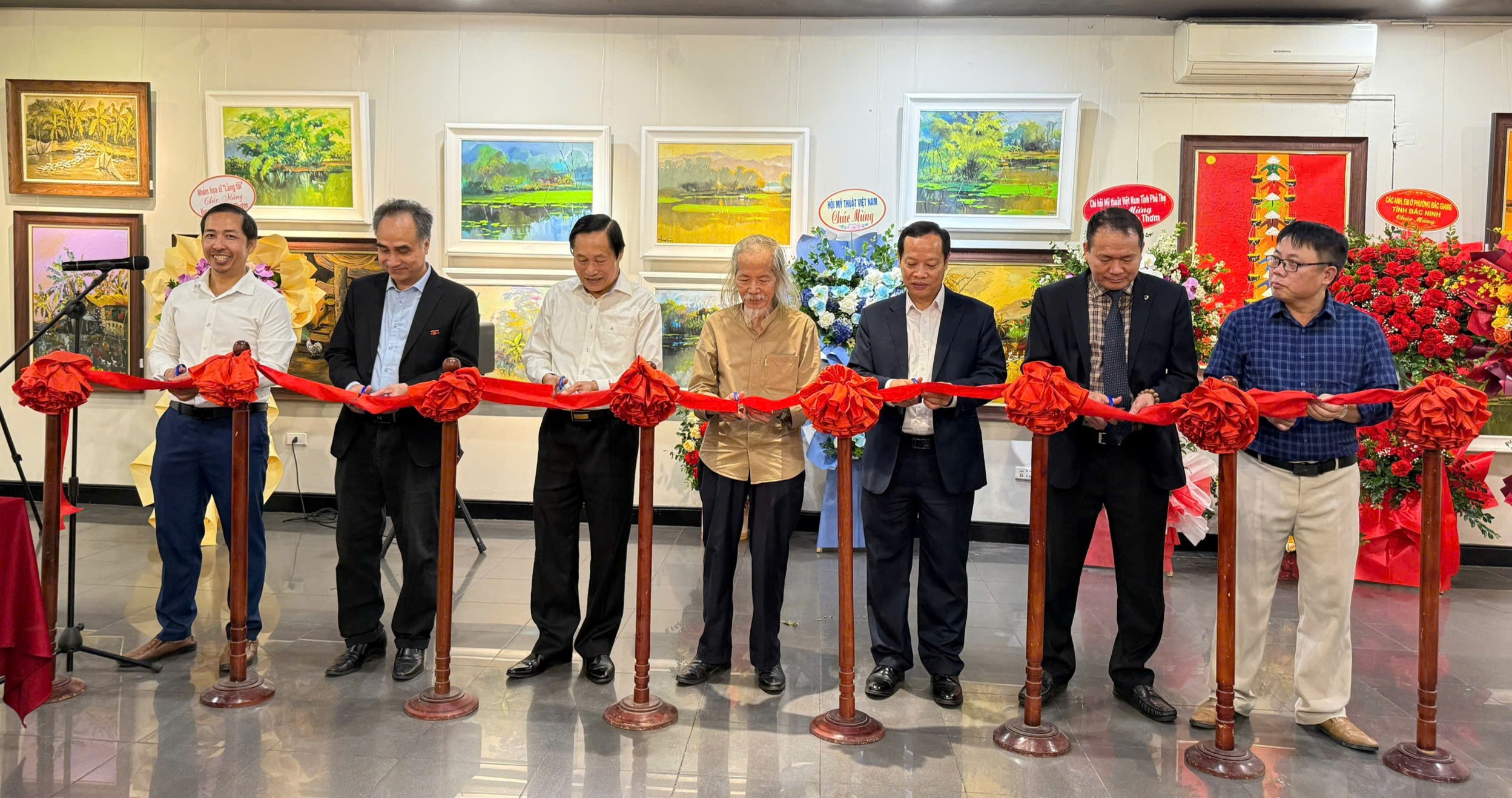 cùng các đại biểu cắt băng khai mạc triển lãm mỹ thuật cá nhân Nét quê. Ảnh Đắc Lợi