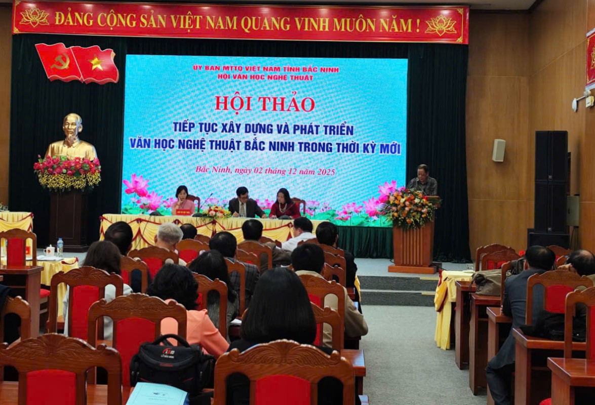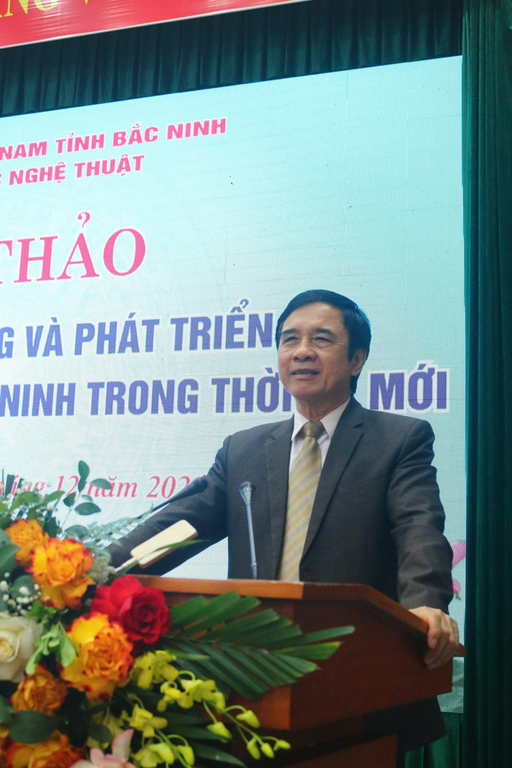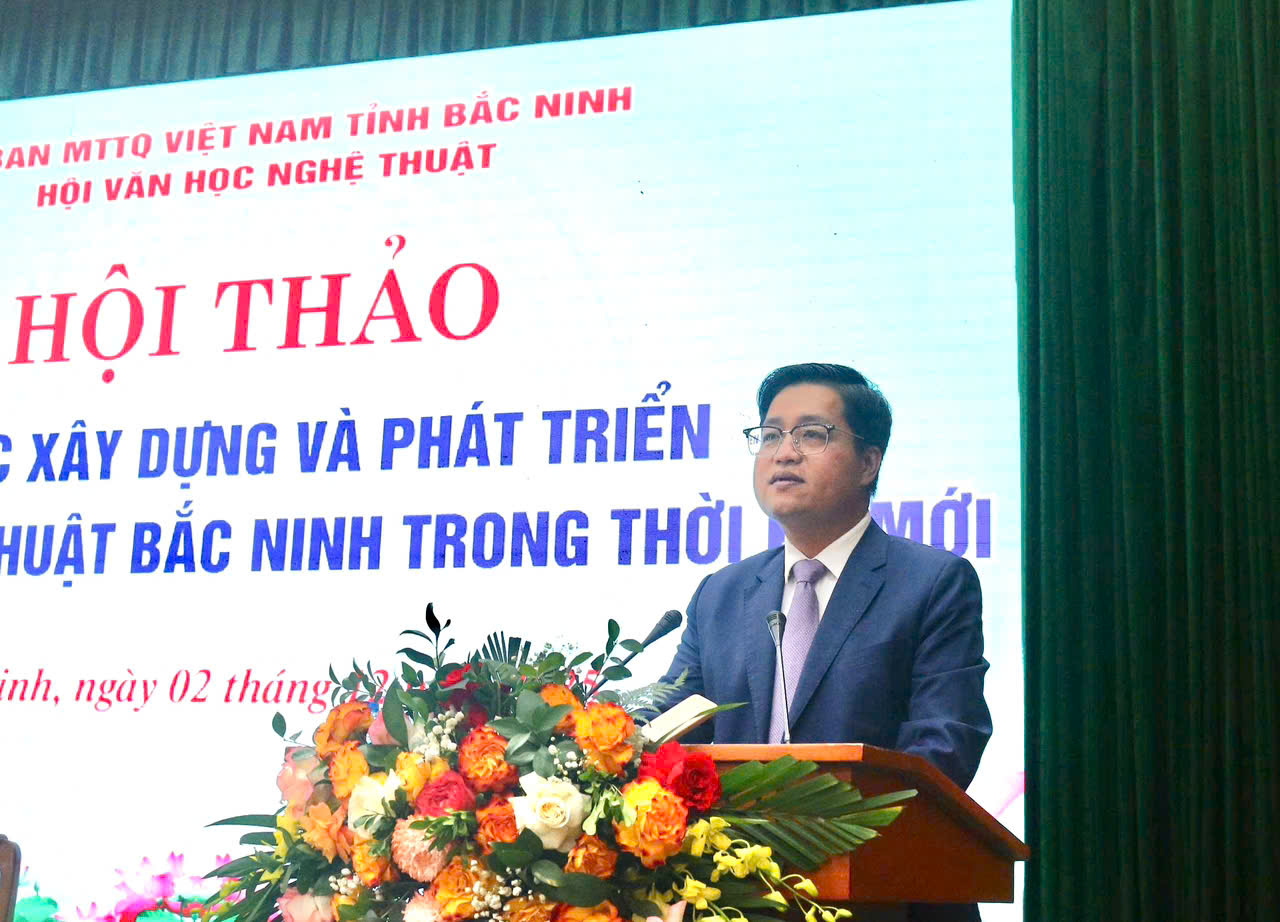 Hội thảo "Tiếp tục xây dựng và phát triển văn học nghệ thuật Bắc Ninh trong thời kỳ mới” là hoạt động chuyên môn để giới văn nghệ sĩ nhìn lại toàn diện chặng đường phát triển Văn học nghệ thuật Bắc Ninh 45 năm xây dựng và phát triển; đánh giá những thành tựu đạt được, chỉ ra những hạn chế, nguyên nhân yếu kém; bàn luận, đề xuất các giải pháp, định hướng để tiếp tục xây dựng và phát triển văn học nghệ thuật Bắc Ninh xứng tầm với tiềm năng, thế mạnh và kỳ vọng về Văn học nghệ thuật Bắc Ninh trong thời kỳ mới đáp ứng yêu cầu phát triển đất nước, nhu cầu hưởng thụ văn học, nghệ thuật ngày càng cao của nhân dân, góp phần đồng hành với dòng chảy văn học, nghệ thuật cả nước. Khai mạc Hội thảo, Nhạc sĩ Nguyễn Tuấn Khương- Chủ tịch Hội VHNT tỉnh đã nêu: "Cùng với chặng đường xây dựng và phát triển Văn học nghệ thuật, đội ngũ hội viên cũng không ngừng lớn mạnh, trưởng thành cả về số lượng và chất lượng. Bên cạnh những hội viên nòng cốt, lão thành, ngày càng bổ sung nhiều hội viên trẻ triển vọng. Bên cạnh những kết quả đạt được, Văn học nghệ thuật Bắc Ninh cũng đang đứng trước yêu cầu, thách thức mới của thời kỳ phát triển đất nước và hội nhập quốc tế sâu rộng; sự bùng nổ của công nghệ thông tin, sự tác động của các nền tảng mạng xã hội, trí tuệ nhân tạo (AI); sự hội nhập, giao thoa văn hóa, VHNT… những vấn đề mới nảy sinh trong đời sống xã hội… Đặc biệt trong kỷ nguyên vươn mình của đất nước đòi hỏi Văn học nghệ thuật cũng phải có sự chuyển mình mạnh mẽ, vừa giữ gìn, phát huy bản sắc, vừa sáng tạo những tác phẩm mới có giá trị tư tưởng và nghệ thuật cao, phù hợp, đáp ứng nhu cầu thưởng thức Văn học nghệ thuật ngày càng cao của các tầng lớp nhân dân và sự phát triển bền vững của quê hương đất nước. Hội VHNT là một trong những tổ chức chính trị - xã hội – nghề nghiệp được Đảng, Nhà nước giao nhiệm vụ với phương châm: "Dân tộc – Khoa học – Đại chúng”. Mỗi tác phẩm VHNT ra đời cần đảm bảo 3 điều kiện "Đúng – Trúng – Hay”.