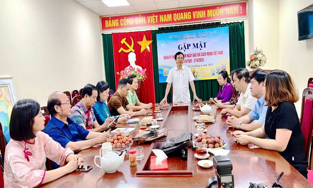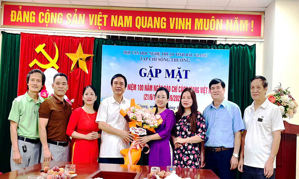 Ngày 16/6, Tạp chí Sông Thương của Hội Văn học nghệ thuật Bắc Giang tổ chức Gặp mặt kỷ niệm 100 năm Ngày Báo chí Cách mạng Việt Nam (21/6/1925 - 21/6/2025). Dự buổi gặp mặt có đồng chí Trần Đức Hoàn, Phó Chủ tịch Hội Nhà báo tỉnh, cùng các đồng chí lãnh đạo thường trực Hội VHNT tỉnh và các ủy viên Ban Chấp hành Hội và các nhà báo, biên tập viên của Tạp chí Sông Thương.